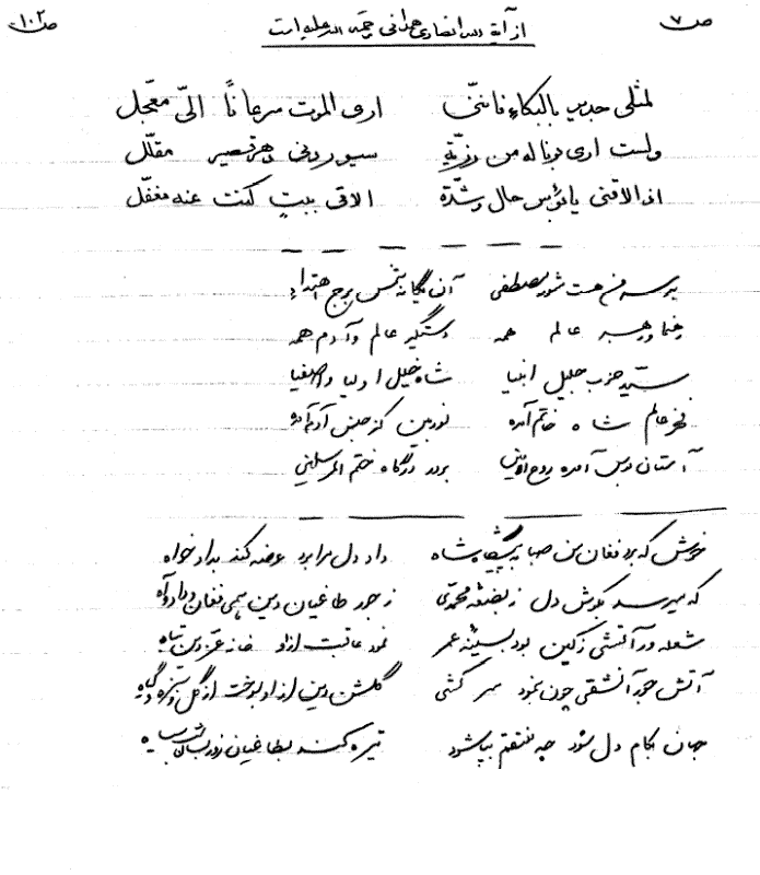 مکتوبات خطی / جنگ10 / صفحه99: ابیاتی درباره مرگ و پیغمبر صلی الله علیه و آله