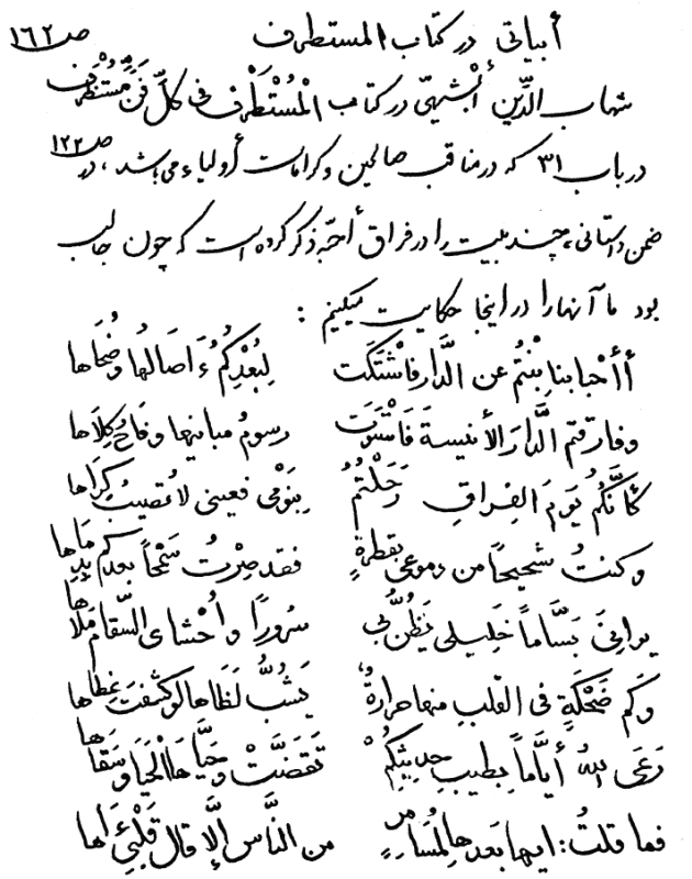مکتوبات خطی / جُنگ 13/ صفحه160: ابیاتی از کتاب المستطرف