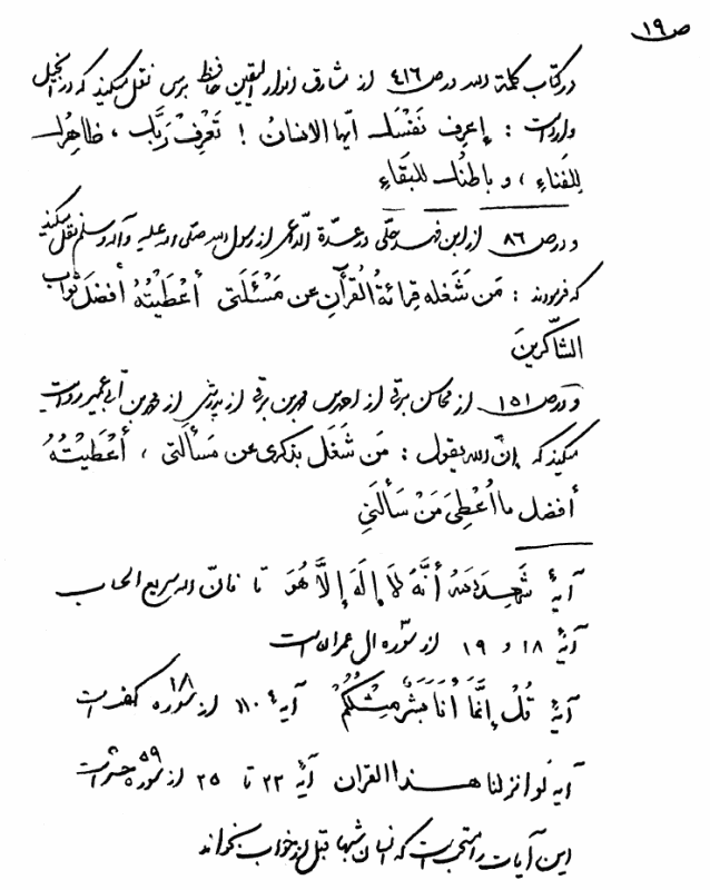 مکتوبات خطی / جُنگ 13/ صفحه17: خود شناسی و خدا شناسی، ثواب قرائت قرآن و یاد خدا