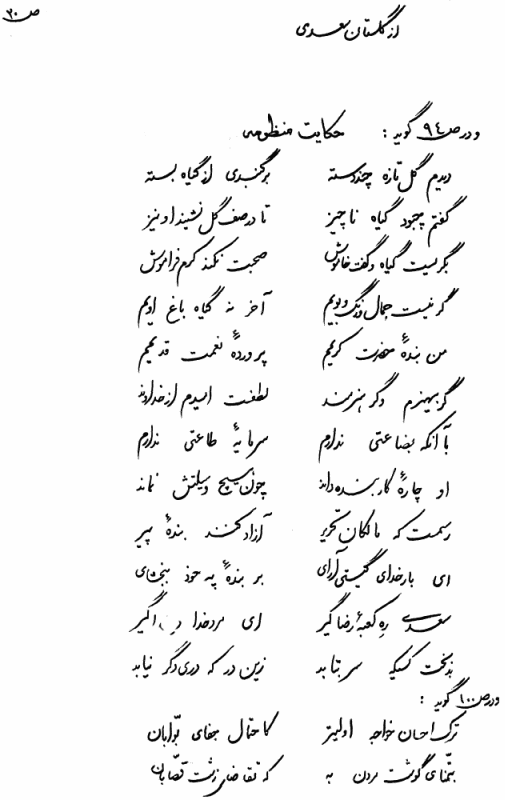 مکتوبات خطي / جُنگ18 / صفحه9: اشعاري از گلستان سعدي