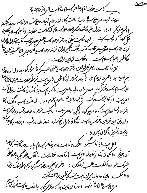 مکتوبات خطي / جُنگ7 / صفحه380: معجزه ای از امام رضا