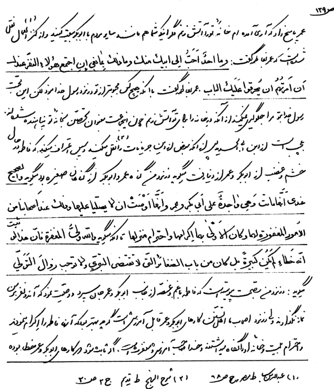 مكتوبات خطي / مواعظ / نخستين قرباني / صفحه129: اعتراف ابن‌ابي‌الحديد نسبت به غضب و خشم فاطمه زهراء سلام‌الله‌عليها بر شيخين